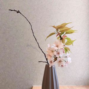 家のしだれ桜が咲きました🌸 小さいけど、相当古いものみたいです。品種分かりませんが、この前来てくれた庭師さんがかなり良いものだと言っていました😌 ソメイヨシノより2.3日だけ遅く咲きます。葉っぱと花が同時に開いたのは今年暖かいからかな🤔?この品種の特徴なのかな? 何年か様子みたいと思います。 庭から花を採ってきて生ける時は『どの花瓶が合うかなー。どんな形に生けようかなー。』と考えながら枝を探します。 でも実際生けてみると全く想像しなかった形になる事もあります。 今回はまさにそれ😊 しだれ桜なので、壁掛けで前に垂らそうかとか色々考えましたが、この雰囲気が一番素敵でした。