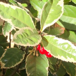 今日の花の南天は、鳥に食べられて実は残っていないので、ヤブコウジの赤い実が未だ付いていたので、実の付かない斑入りのヤブコウジに付けて写メしました‼️ つぼみは、斑入りヤブコウジの物ですよ🤗