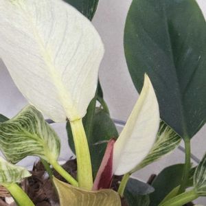 こちらもDAISO産 クロトン 品種名は不明の子です よくお水を欲しがる子です 1日あげないと葉がぐったりしてます フィンデンドロンバーキンかな 新しく出た新葉はミドリンです 模様もない 紫外線強いから植物なりに対策するのかな 涼しくなってきたら葉の模様も出てくるかな