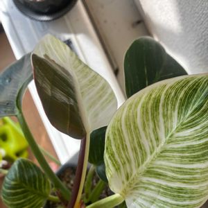 見事な斑入りのIKEAのバーキンちゃん🩷 DAISO生まれのうちの子は緑多め🤣 鉢を小さくしたらいいのかしら💦