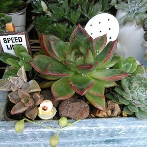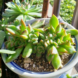 2週間ほど前に「秋を感じてる✨」といってあげた子の双子ちゃんのもうひとり😊 ややこしい💧 お迎え時双頭だったので、分けた子達です。 この子はもっと秋を感じてた😆 多肉達が紅葉し始めて、毎日可愛い😍可愛い💕と写真ばかり撮るので、容量が😱