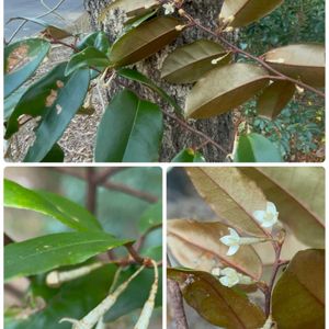 「ツルグミ」 初めて見つけた「ツルグミ」 グミにも色々ありますが… ナワシログミ ナツグミ アキグミ などなど 比較的春に咲く花が多く ツルグミは12月頃と遅く 葉っぱの色が 表➡️ 濃緑色 裏➡️ 赤褐色 他のグミの葉色とは違い これで他のグミと 見分ける事ができますね‼️