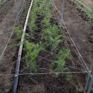 こんばんは! 旦那さんの2年後の退職に向けてハウス建てて、1週間前にアスパラガスの苗を植えました❗️ 今日は支柱建て、ネット張り水やりの配管 旦那さんのご近所先輩に土作りから完成まで手伝ってもらいやっと終わりました! 収穫は2年後から 長いけど楽しみです‼️ みかんも60本植えました🍊🍊