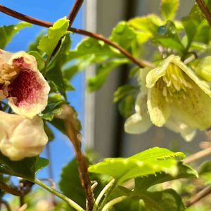 今日のお花 🔔クレマチス 冬咲きクレマチス 秋に葉を付け 冬に釣り鐘状の花を咲かせます🔔