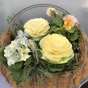 週末お迎えのフリフリパンジー、ワイヤーバスケットに植えました🧺 ニュアンスカラーのイエローがかわいいね〜☺️💛