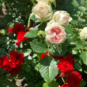 名無しの赤いミニバラは毎年たくさん咲いてくれるトゲがゴッツゴツな丈夫なコです🌹🌹 パシュミナはホームセンターで500円玉でお釣りがもらえるコを見つけお迎えしたものです。 大きく育ってくれて嬉しいです😊