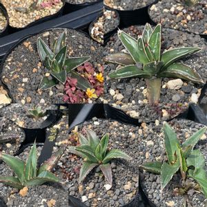 アガベ 笹の雪… 笹の雪はバリエーションが凄いでやんす! とか思っていたのですが、 笹の雪 ピンチラ スワダボエ フアステカキャニオン バスタマンテ を一緒くたに実生していたようです😱 一番色が濃いのが笹の雪で後は良く分からないです\(˙◁˙)/ 答え合わせでまた種を撒くので増えるのですよね〜。 植え替えは風が強くなりすぎたので写真撮影して敗走しました。