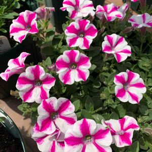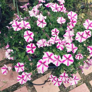 PW スーパーチュニア・ラヴィドゥヴィ 4月3日(水)にお迎えしました ピンクと白のストライプ模様のペチュニア 2日続きの真夏日の名古屋 今週になって一気に咲き始めました~‼️ 諦めずカットし続けて花数を増やして 可愛くしてあげたいと思います