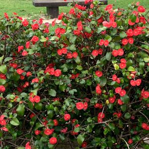公園に咲いていた 『トゲナシハナキリン』 赤く丸い花が可愛いです❤️🌺 トウダイグサ科