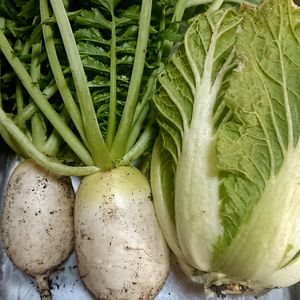 ミニ白菜とミニ大根、収穫しました!! ミニ大根は思っていたより小さくてがっかり😣 今夜は鍋だな🍲