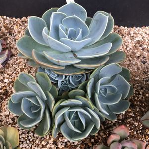 七福神に似てますが、ビックブルーというエケベリアです✨ 七福神のように雨ざらしだと傷みやすいような気がします。