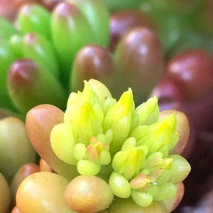 虹の玉に初めて花が咲き、 驚いています(°▽°) (花が咲くんだー!) (やっと大人になった?) 地植えしているのですが、粒も大きく育っています。水やりも肥料もなく、降雨のみです。 セダム属は手間いらずですね(*´-`)