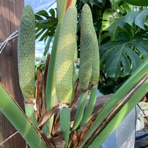 近所の園芸店にある巨大モンステラ 実がなっていました。 一度は食べてみたい🤤 追記 重複してしまった投稿を削除しました。いいねくださっていた方、申し訳ありません💦