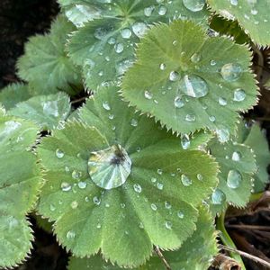 今日は一日中☔️降りです。 アルケミラモリスの葉ってこんなに水を弾くのね✨