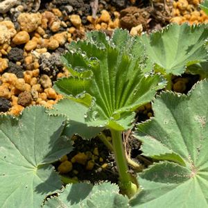 ギザギザ葉っぱの縁に 💧💧💧💧綺麗😆 「アルケミラモリス」の名前が出て来なくて 何だっけ何だっけ?の朝でした😆アハ体験。
