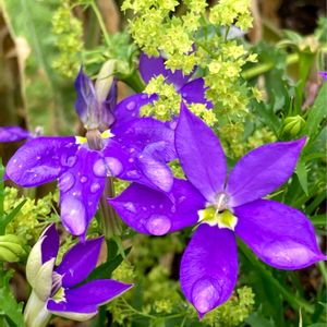 市施設の入り口花壇で出会った、 雨上がりのイソトマとアルケミラモリス🥰 梅雨の時期は鬱陶しいが、こんな素敵な瞬間に出会えるなら、雨☔️も捨てた物じゃないと思える💓😍😘