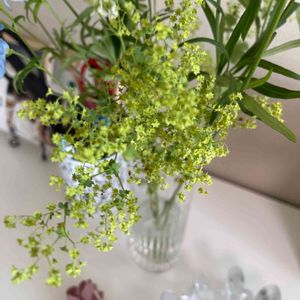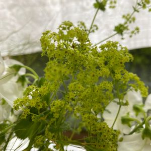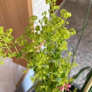 アルケミラモリス💚 ずっとずっと一度は育ててみたかった子(*´˘`*)♥ 1年前小苗を手に入れて今年初めて可愛いお花が咲きました💛 *英名は「レディースマントル」 別名は、折り紙を開いた様な丸いリーフがマントに似ているので「聖母マリアのマント」 と言われています😊 イングリッシュガーデンでよく植栽されてる人気の植物で本当に素敵です🥰 寒い地方では育てやすいみたいだけど夏越し気を付けてもっと大きくしたいなぁ〜🎶