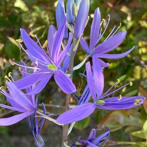 《カマッシア〜6枚の星形の花弁🌸》 カマッシアは花弁数6枚の星形の花を咲かせる高性の球根植物🌸 北アメリカ原産です。花色は青、紫、白など。半八重咲き品種もあります🌼 強健で育てやすく、宿根草としても扱われています。 長く伸びた花茎に30~50個ほどの蕾をつけ、下から順に数個ずつ咲いていきます。