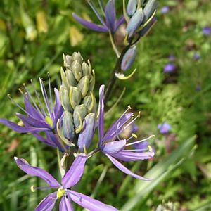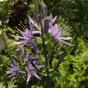 今晩は☔ 何を植えたか解らず名前もなく咲いたのがこの花濃い紫の花以外に素敵です🥰 名前調べたらカマッシア あってますか?