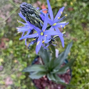 昨日の雨上がり☔️ 水滴の💧ついたカマッシアです😊 晩秋に球根を植えました🌱 名前が今ひとつなので、期待してなかったけど、とてもきれいな花です。