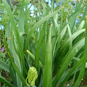 カマッシア。 いつ植えたのかな・・。花壇の花の間からひょっこり顔を出していました。