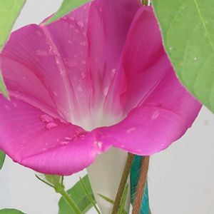 我が家の庭の雨に濡れたアサガオ。 台風接近で心配です。