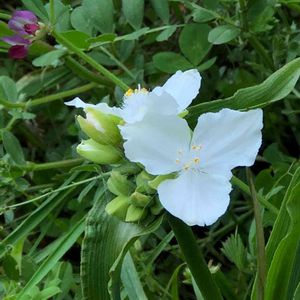 登山口に向かう途中でムラサキツユクサの中にポツンとシロバナが🤍✨
