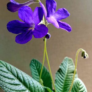7ケ月ぶりに咲いたストレプトカーパス。 白だと思っていたのに紫です。 販売員さん間違ったのかなあ。