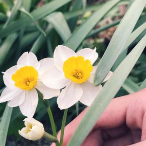 散歩の途中で見つけた水仙。😍 お花がもたげていたので、 持ち上げてパシャ❗️🌿🍀 可愛かったです。💕