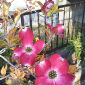 おはようございます☀ ハナミズキレッドジャイアン🌺 上の方から 蕾 開きかけ 開花と写せました😄 花数少し少ないです😓 斑入りなので そうなのかも お花が 終わっても葉がキレイですよ🌱 昨日 ガーデンショップに行って サフィニアアートももいろハート購入 中輪系です 可愛い🥰 今日 植えなくては🙋