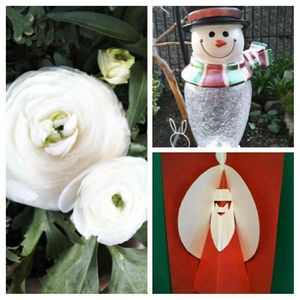 おはようございます☀ ラナンキュラス蕾がまた出てきて🌼3番花が🔹🔹🔹4番目も 右下のクリスマスカード ボランティア活動で 作りました うまく考えられていますね🎶