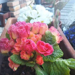 おはようございます☀ ピンク系🌸寄せ植え🎶作りました😄 シクラメン ビオラ(見えてない) ラナンキュラス プリムラマラコイデス プリムラジュリアン プミラです🤗 ビオラとプミラ カットした後なので 小さいです