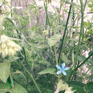 勝手口に咲いた ブルースター🤩 ふわりと翔んできた種が 良いとこに根付いて 居心地いいのかな💕