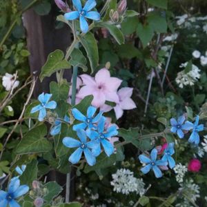 水色の星が輝いています⭐️ わき芽も増えて、たくさん咲いてくれました。 花瓶の中での、共演者には困りませんね。 あらっ、早速声がかかりましたよ。
