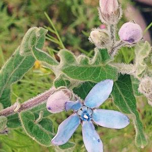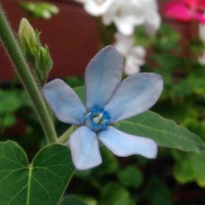 ブルースター(オキシペタラム) 昨年採取した種を3粒ほどいただいて、春先に蒔いてみました。芽が出たときは嬉しかったなー✨ そのうちひとつだけゆっくりゆっくり育って、花を楽しみにしていたのですが、もう10月。まだ20㎝ほどで、もう咲きそうもありません。 蒔いた翌年に咲くのよ、という方もいらっしゃるので来年まで頑張らねば。 寒い冬を越せるのか心配ですが…。