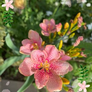 こんばんは⭐️ またまたフラワーパワー🧡🩷💜 可愛い子が遊びにきてました🦎 🎀つけてあげました💝