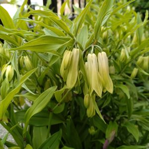 【黄花宝鐸草】《ユリ科》 花言葉 「あなたを離さない」「嫉妬」「追憶」 「思いにふける」「良きライバル」 「忍耐」「持続」 別名 キツネノチョウチン ハトノチョウチン 咲き始めは上向き 花が提灯や宝鐸(ほうちゃく)に 似ている ちなみに宝鐸とは 寺院の塔や法堂などに 吊り下げられている 魔除けの鐘のことを指します 食用となる アマドコロやナルコユリと 似ているうえ、 有毒であるため 間違わないようご注意