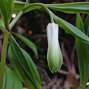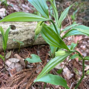 No. 1670 ホウチャクソウ(宝鐸草) イヌサフラン科ホウチャクソウ属 その2 ホウチャクソウの若い果実です🎵 大きさは4ミリくらいかな☺️ 熟すと、黒くなりますよ😹 ホウチャクソウは、アマドコロやナルコユリと似ますが、茎が分岐するので、同定するねは容易です☺️ 花は1~3個付きますが、花柄(付け根近く)で、分岐します☺️