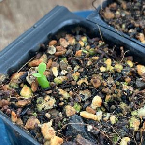 確実に発芽!!3-4日で、発芽!! ほじくってないよ😂 奥のアガベちゃんもいい感じ😆 気温高いから、積算温度かせげるんかな🤔