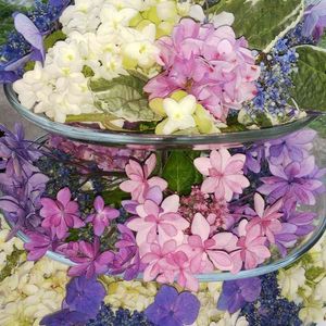 庭のアジサイ盛り💜❤💙💗 趣味の園芸で見たアレンジ✨真似たく、実践してみました~(*ˊ˘ˋ*)。♪:*° カシワバアジサイ ダンスパーティ青とピンク 名前の分からないピンク色と青いガクアジサイ