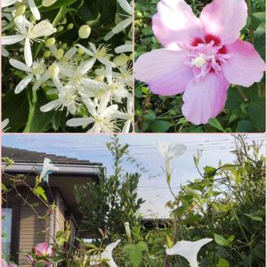 おはようございます☀ 🌺ムクゲ、センニンソウ ♡白いアサガオが絡まり咲いてます❀.*・゚