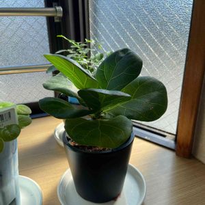 ダイソーで売れ残っていたフィカス(ゴムの木)。連れ帰る決心をしてお迎え☺️ 大きく育てるぞー♡