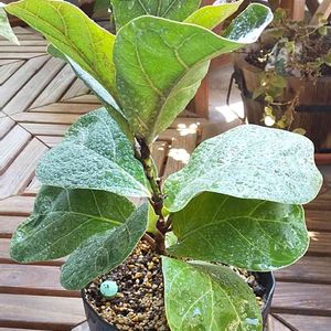 同じく外の日陰で葉水をたっぷりかけられたカシワバゴムです😊 ダイソー出身(300円)です✨ 先日投稿した、花穂?が伸びているペペロミアと同じく昨年の春にわが家に来ました。 ゆっくりですが、少しずつ大きくなってくれています😊💕