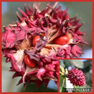 真っ赤なホウノキの実がなっていました。 割れて中の種も見えています♪