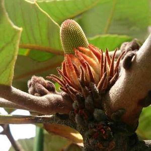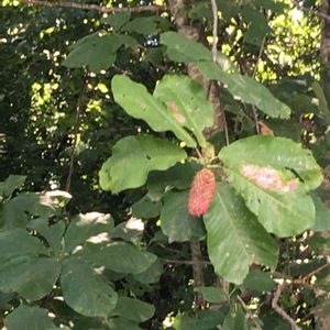 普段高い所でしか見れない花がラッキーにも目の高さで咲いていました。雌雄同株でこの花は雌花で雄花は 自家受粉を避けるため少し開花時期を変えるそう!