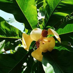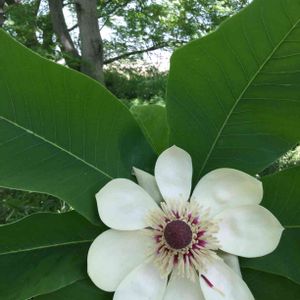 2018.4.21 神奈川県相模原南区の県立相模原公園にて 葉っぱも巨大ですが木に咲く花としては最大級の大きさで蓮の花くらいの大きさです。 臭いも独特の臭いです(^^; 一度に咲かずに順番に咲くので一月くらいは見れます。