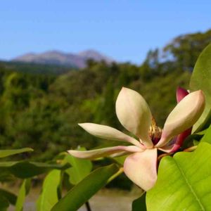 早くも咲き始めたホウノキ🎵 遠くに、高千穂峰が美しい‼️