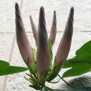 多分、琉球朝顔! 一年で、すっごく太くなり、霜が降りる前にぶっつり切って鉢を家の中に取り込みます!東京より西だと、冬でも枯れないので、お化けのように大きくなってしまい、植えてはいけない植物ランキングでよく見ます!北関東では、枯れてしまうので毎年家の中にへ避難させますლ(❛◡❛✿)ლ