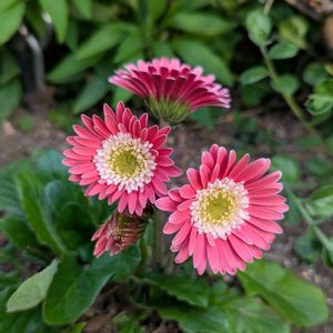 今日のお花 💚ガーベラ💖 我が家のガーデンガーベラ・ガルビネアも咲きだしています😊 昨年、株分けしたので今年は小ぶりな子がいっぱいです💖 今日はガーベラ記念日という事です🤗