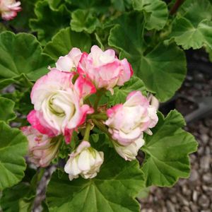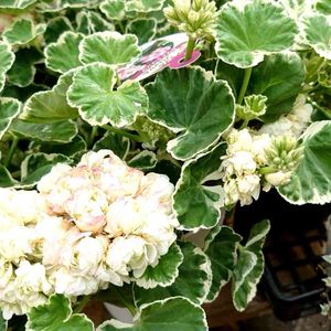 こんにちは😊 今日は、朝のうちは曇ってましたが、早めに晴れて来て、日差しは暖かく、背中に日が当たっていると気持ちが良いくらいでした。今日は、寄せ植え2つ作りました。 今日のpicは、今日の花ペラルゴニウム。 八重咲きゼラニウム“アップルブロッサム ホワイトリング“。 付いていた札には八重咲きゼラニウムと書いてあったんですが、調べると英名は、ペラルゴニウムってかいてある。ペラルゴニウムとゼラニウムの違いは何だろう。 とりあえず、一昨日入手した八重咲きゼラニウムです。薔薇のような花に葉っぱは斑入り。斑が葉っぱの周りに付いているからホワイトリングって言う名前みたいです。 また、花のまわりもうっすらとピンクになるみたいで可愛いです~♥️